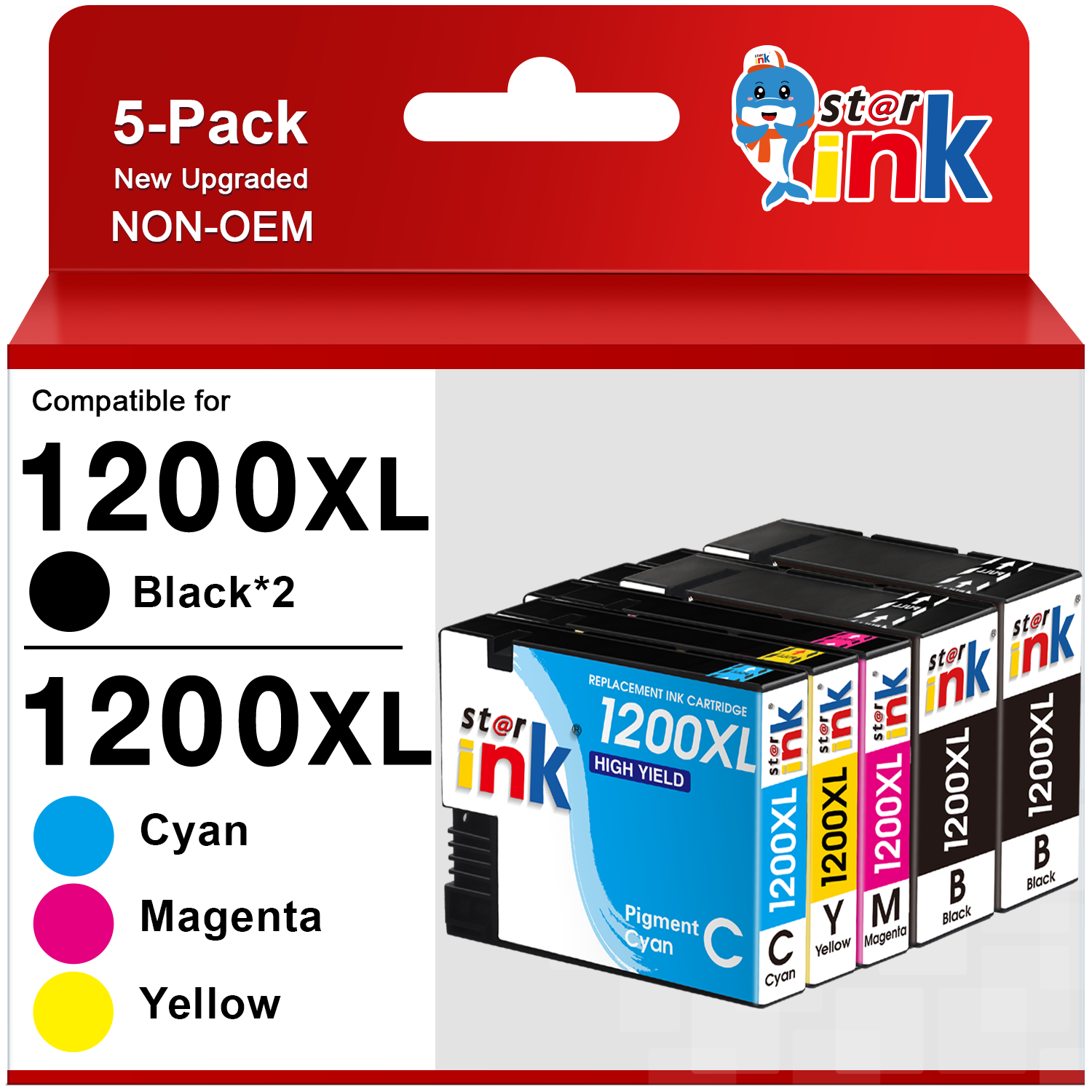 - Model: 5-Pack 1200XL 1200 Ink cartridges Comaptible for Canon PGI-1200XL PGI-1200 XL Ink(2 Black, Cyan, Magenta, Yellow)