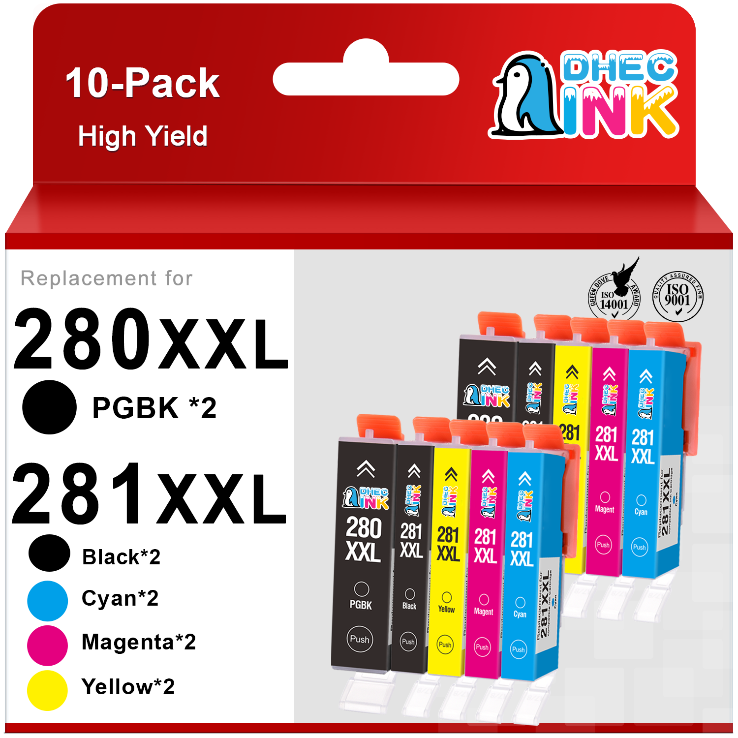 - Package Contents: 2x Large Black 280XL, 2x Small Black 281XL, 2 x Cyan 281XL, 2 x Magenta 281XL, 2 x Yellow 281XL (Total 10 Pack)